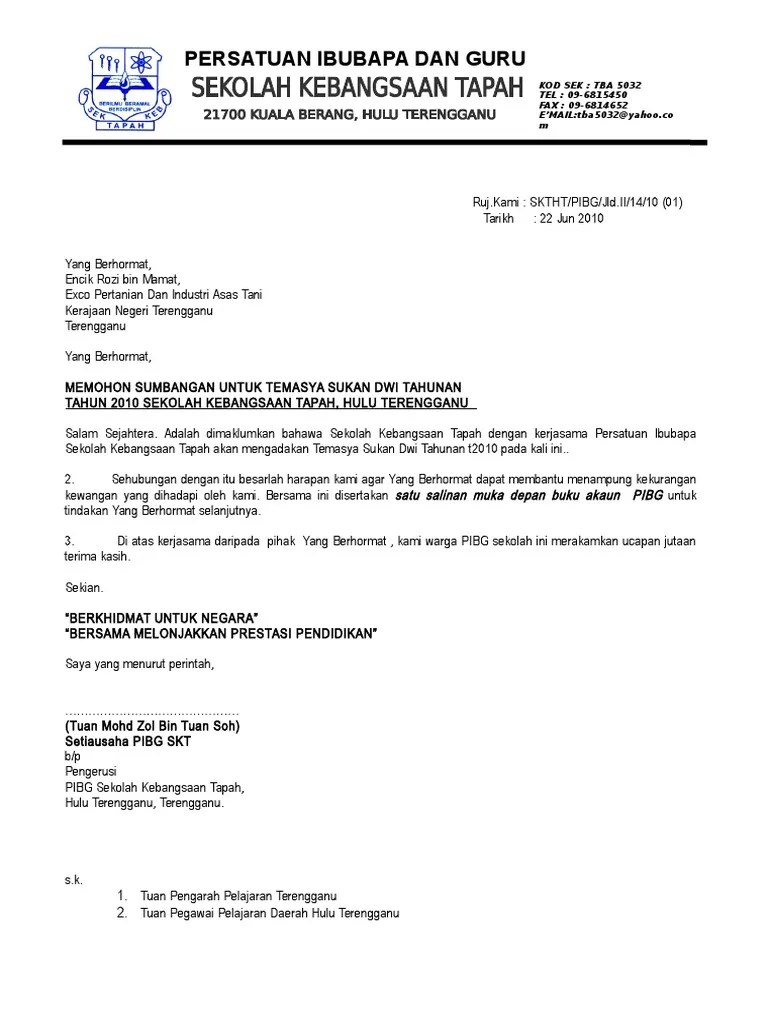 Sehubungan dengan itu kami ingin memohon sumbangan ikhlas dari pihak tuan untuk melancarkan perjalanan program kami. Surat permohonan sumbangan pokok bunga. Beliau juga pernah berkhidmat sebagai bekas menteri kewangan dan merupakan ahli. Ucapannya tular di media sosial, dengan … حاج محمد نجيب بن تون حاج عبدالرزاق; 28.02.2021 · 2 log masuk akaun ezhasil anda.